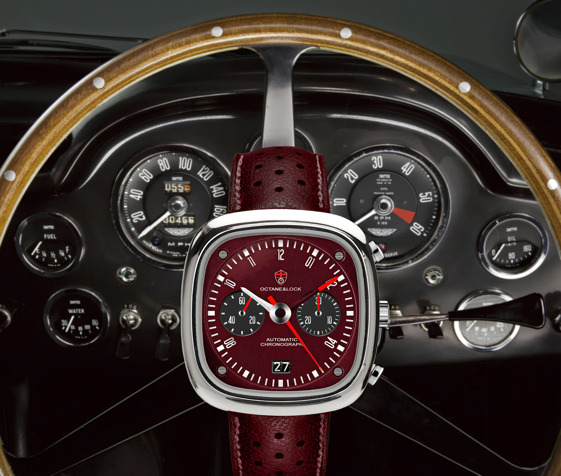 Inspired by the speedometer and front grille of the iconic Aston Martin DB5, the Octane & Lock Newport Pagnell takes its name from the historic home of the British marque, where a little over 13,300 Aston Martins (including 1,022 DB5s) were hand-built between 1955 and 2007.