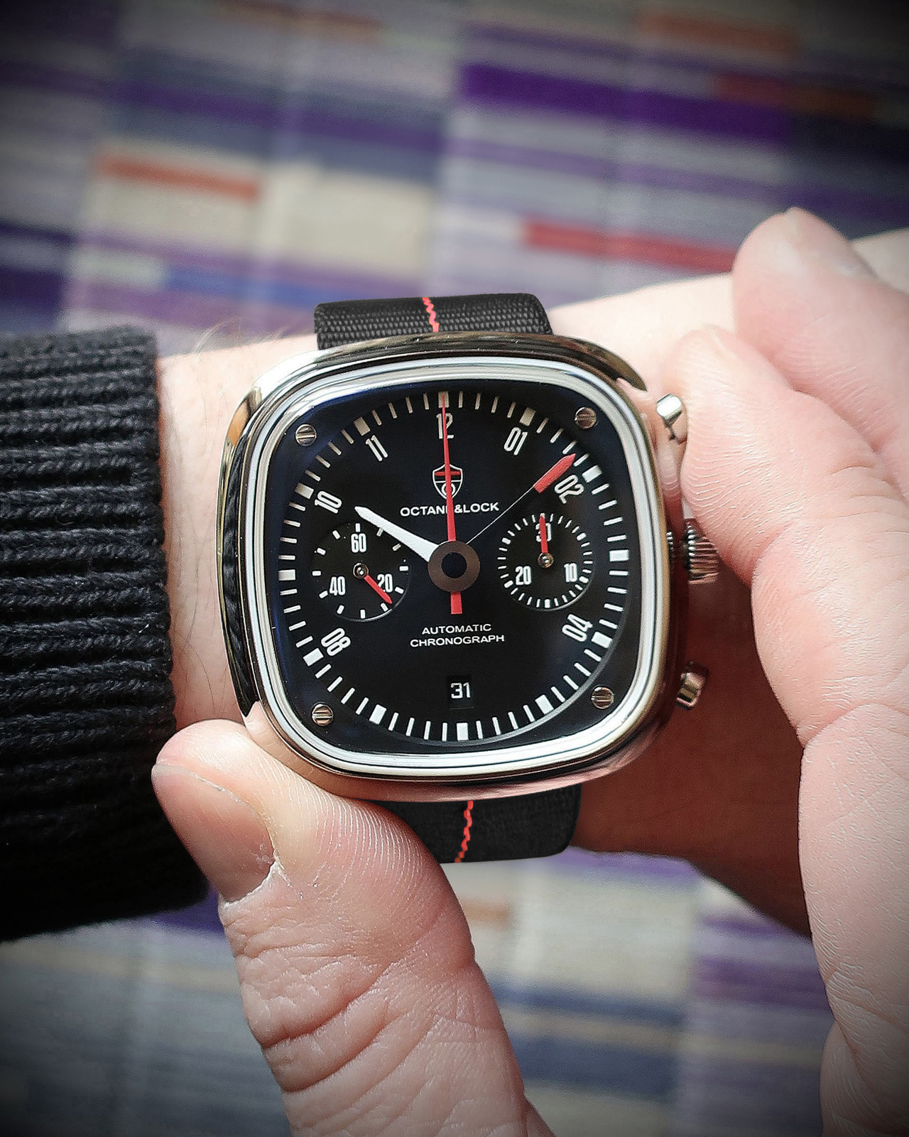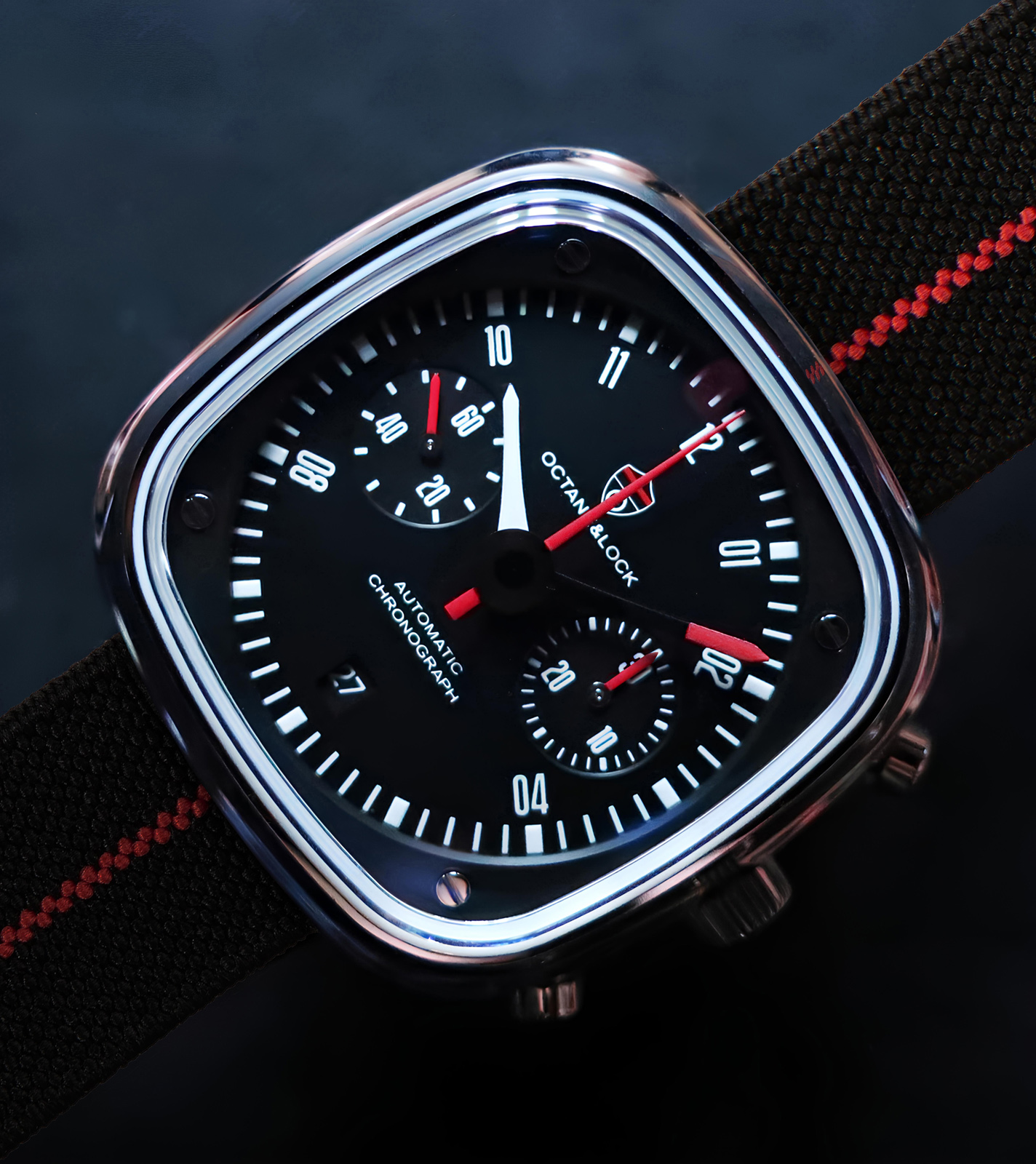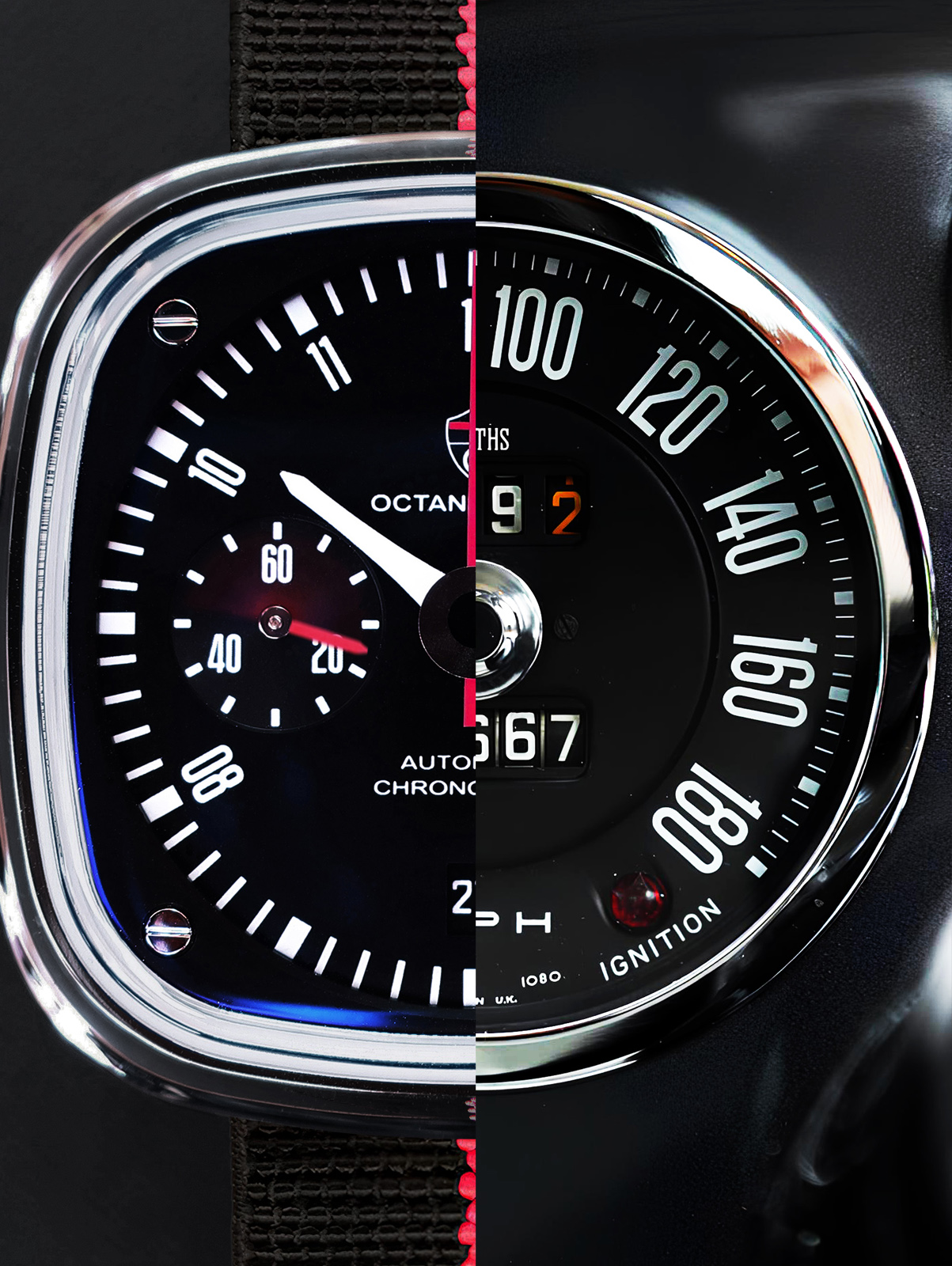 Inspired by the speedometer and front grille of the iconic Aston Martin DB5, the Octane & Lock Newport Pagnell takes its name from the historic home of the British marque, where a little over 13,300 Aston Martins (including 1,022 DB5s) were hand-built between 1955 and 2007.