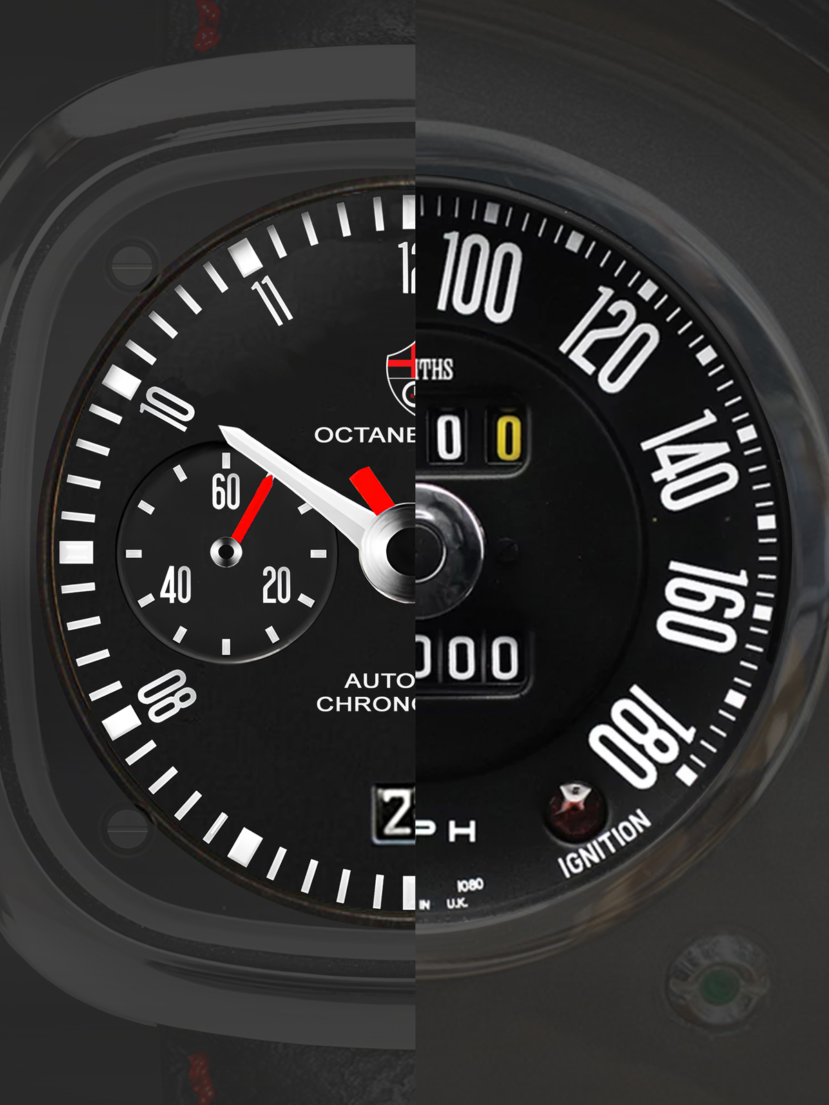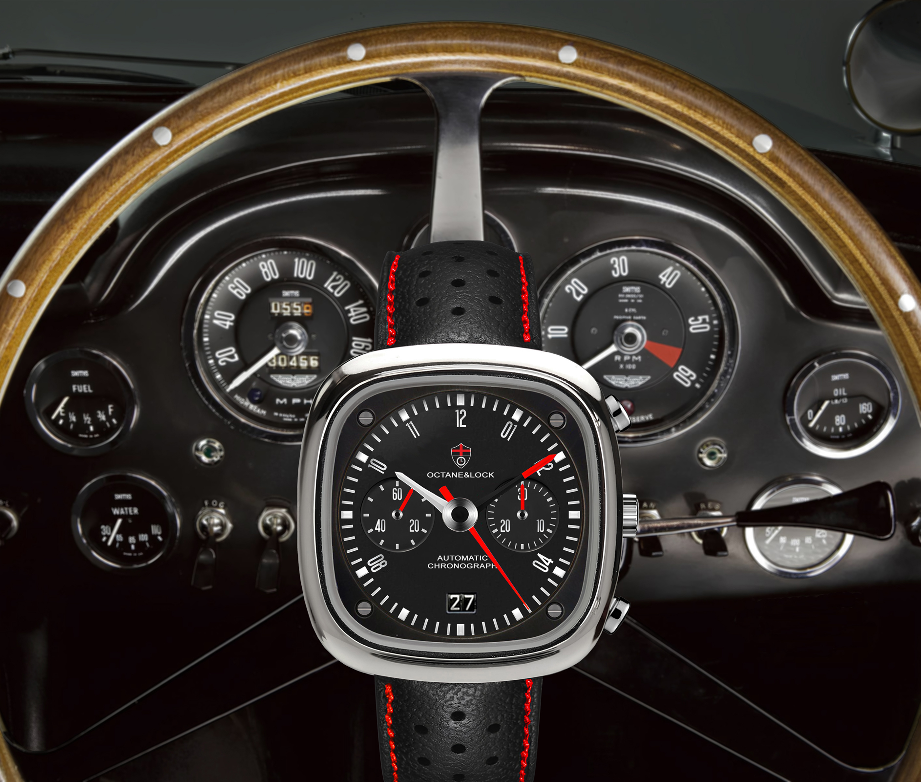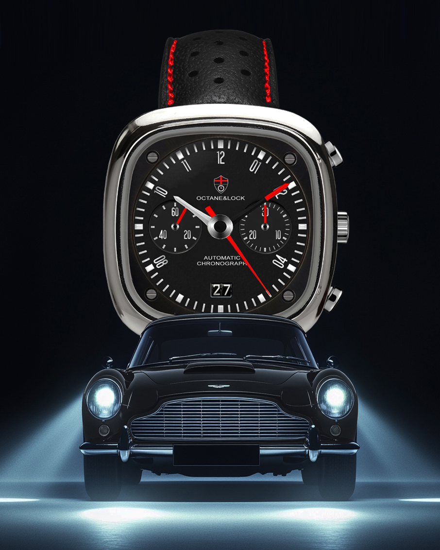 Inspired by the speedometer and front grille of the iconic Aston Martin DB5, the Octane & Lock Newport Pagnell takes its name from the historic home of the British marque, where a little over 13,300 Aston Martins (including 1,022 DB5s) were hand-built between 1955 and 2007.